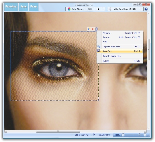 - With priScanner you may quickly preview scanned documents, select area of interest and scan it with higher resolution. Scanned area may be rescaled, rotated and copied to clipboard, saved as images or printed.