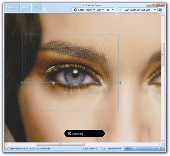 - priScanner scans right into preview window, no need to open image editor or any other application in order to scan or preview image